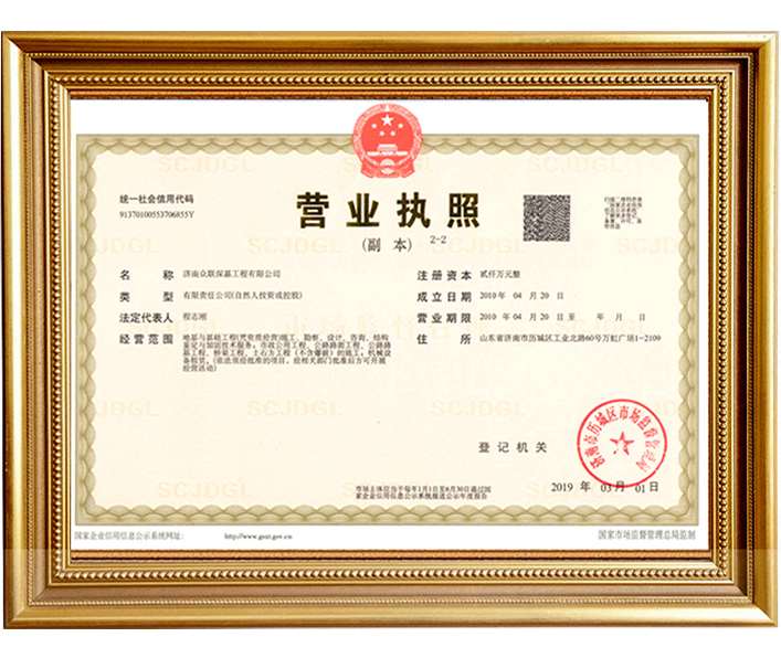 山東眾聯(lián)恒信工程集團(tuán)有限公司成立于2010年4月20日,注冊(cè)資金2000萬元,固定資產(chǎn)8500萬元,公司主要從事地基基礎(chǔ)、勘察、設(shè)計(jì)等方面的專業(yè)承包,地基基礎(chǔ)專業(yè)施工資質(zhì)壹級(jí)。